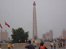 在平壤,导游领我们看了地铁。车站很漂亮,很深,距地面100多米。车厢一般。车票与公交车一样,合三角多人民币一次,不计距离。导游说,她的月薪约为三、四百元人民币。根据收入折算下来,平壤比北京的地铁票价相对高些,但对外国游客来说,这无疑是非常便宜的。据说平壤地铁是中国工程兵建的,用的是天津准备建地铁的材料。